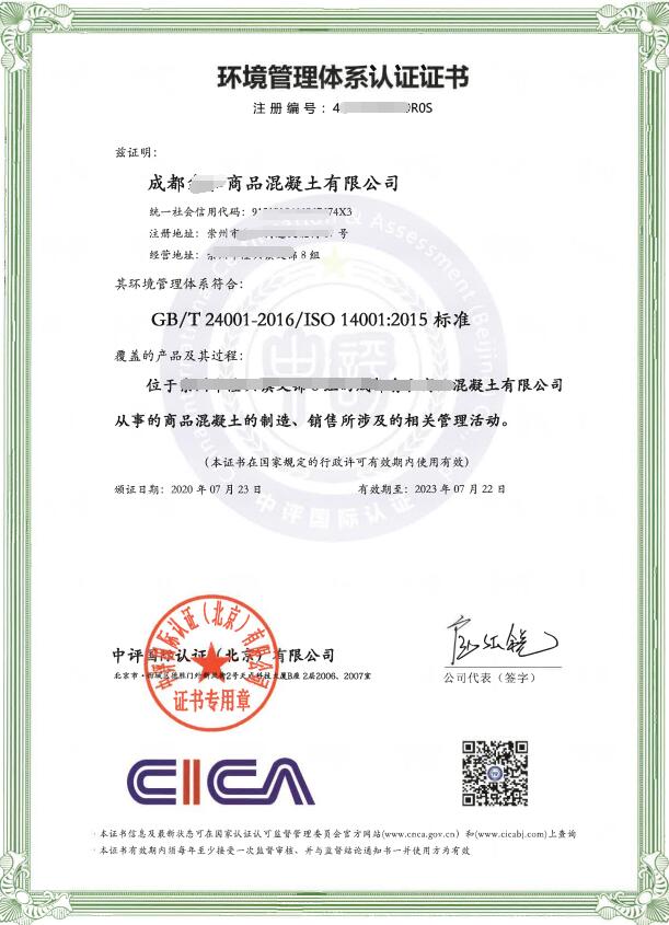 环境管理体系证书