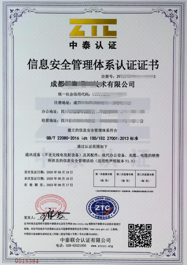 信息安全体系证书
